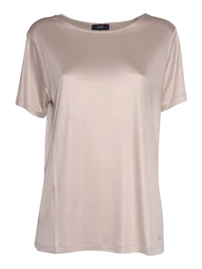 Simple Round Neck Short Sleeve T-shirt In Beige