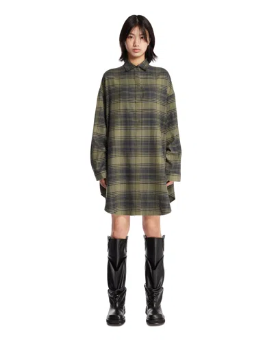 Green Checked Shirt Dress In Multi