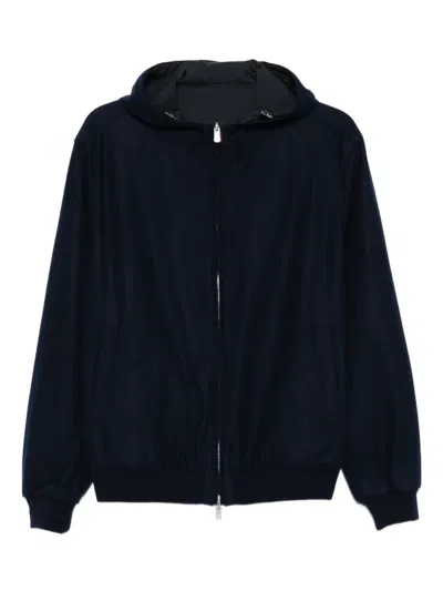 Reversible Bomber Jacket With Hood In Cashmere Flannel And Airstop In Blue