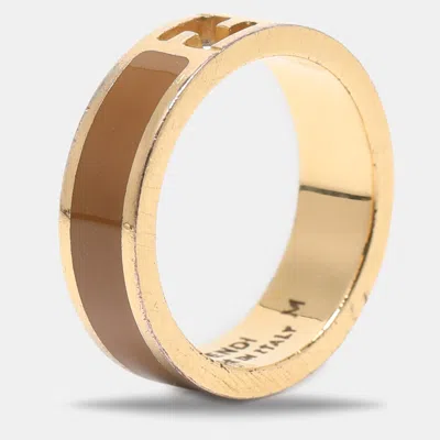 Pre-owned Gold Tone Metal Crystal O'lock Ring Size 50
