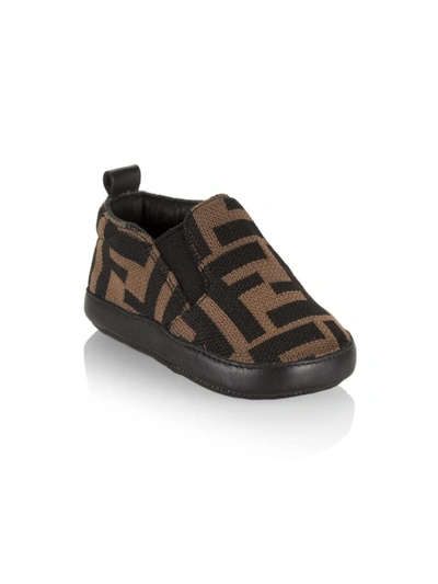 Babies' Ff-motif Leather Crib Shoes In Blue