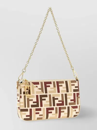 Women Continental With Chain Baguette Leather Shoulder Bag With Embossed Ff Logo In Multi