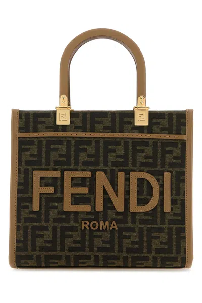 Women Roll Large Ff Jacquard Fabric Shopping Bag In Brown