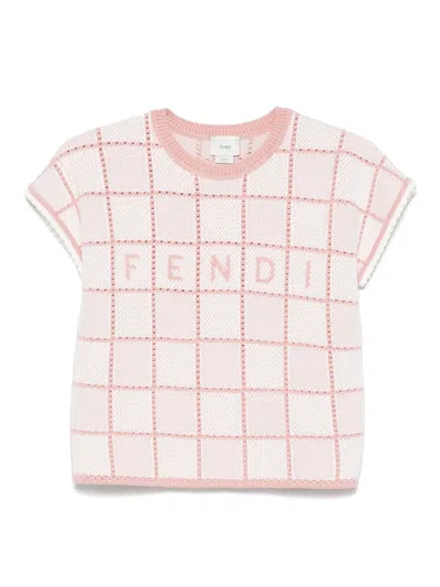 Kids' Ff Logo-embroidered Wool Jumper In Pink