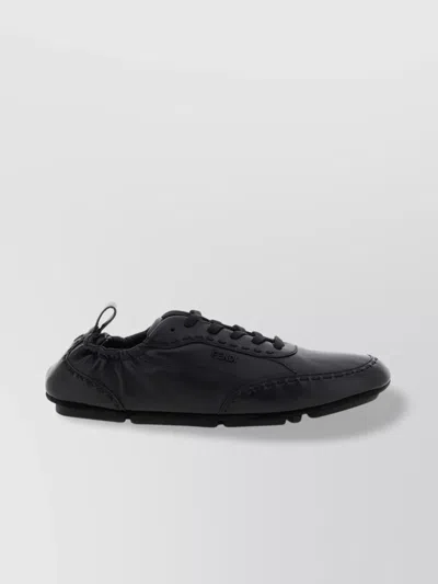 Men Leather Flow Sneakers With Ff Jacquard Fabric Inserts In Black