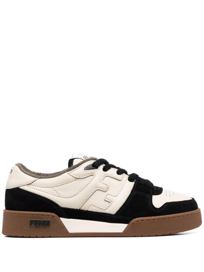 Match Ff Jacquard And Leather Sneakers In Neutral