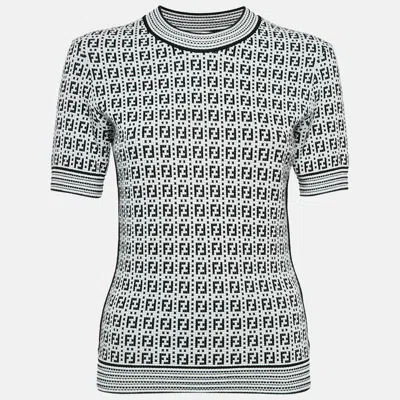 Pre-owned Black/white Ff Textured Knit Crew Neck Pullover M