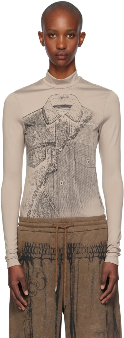 Taupe Deconstruction Printed Jersey T-shirt In Khaki