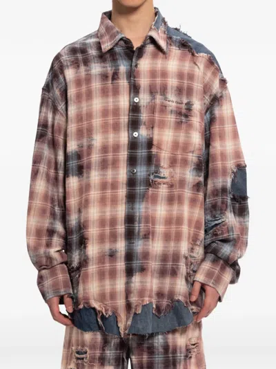 Distressed-effect Checked Shirt In Brown