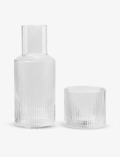Ripple Textured Small Glass Carafe Set 500ml In Clear