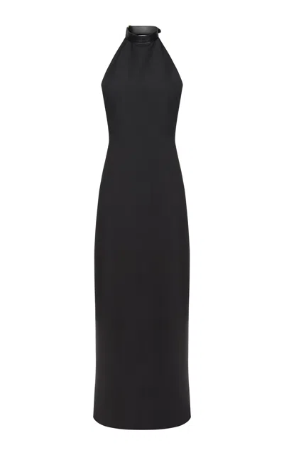 Layla Pleated Hammered-satin Maxi Dress In Black