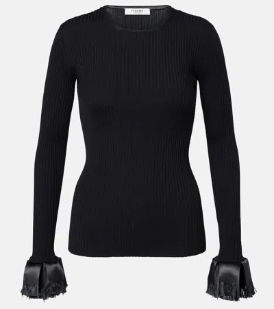 Nova Satin-trimmed Ribbed Wool-blend Top In Black