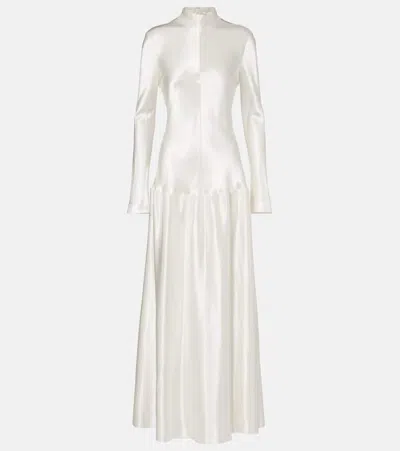 Mila Pleated Hammered-satin Maxi Dress In White