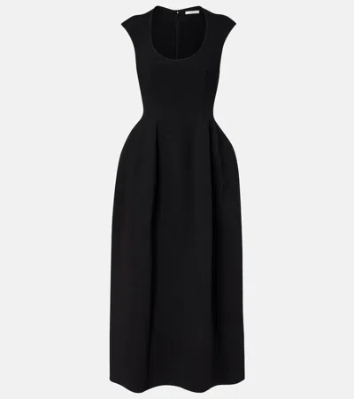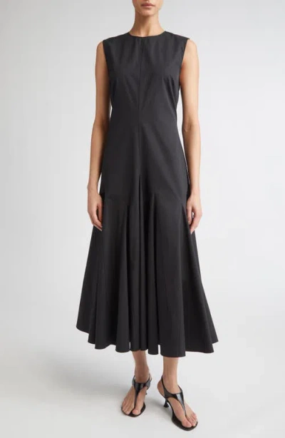 Colette Godet Flared Cotton Poplin Midi Dress In Black