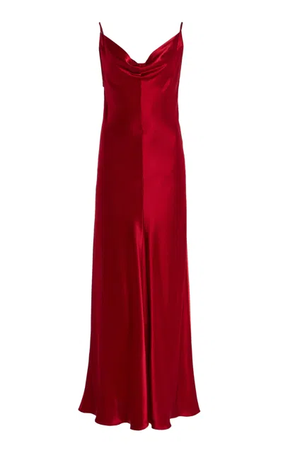 Emi Draped Hammered-satin Midi Slip Dress In Red