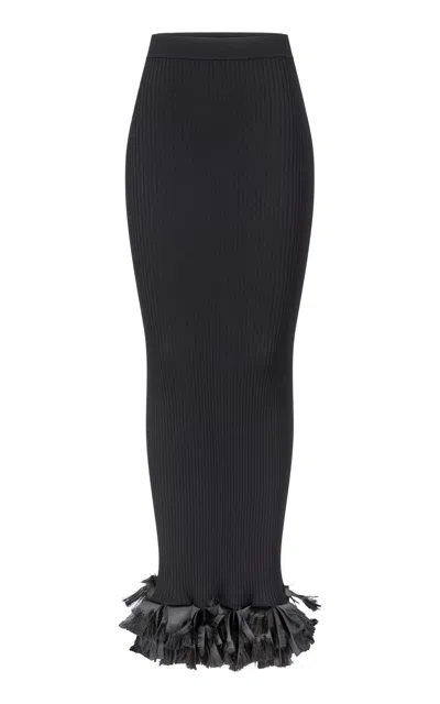 Ash Drape Fringe Trim Maxi Skirt In Black
