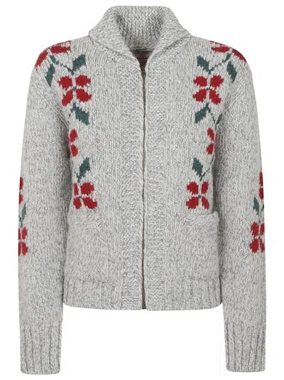 花卉拉链针织衫