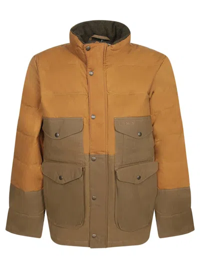 Fleece-lined Brown Canvas Shirt Jacket With Metal Snap Buttons