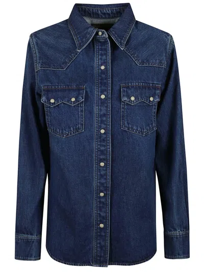 Indigo Texan Denim Shirt With Snap-button Closure And Pointed Collar In Blue