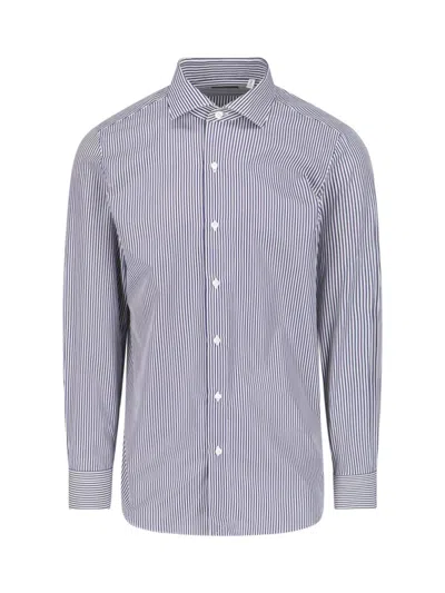 'milano' Striped Cotton Shirt In Blue