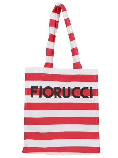 Red Striped Logo Print Nylon Tote Bag