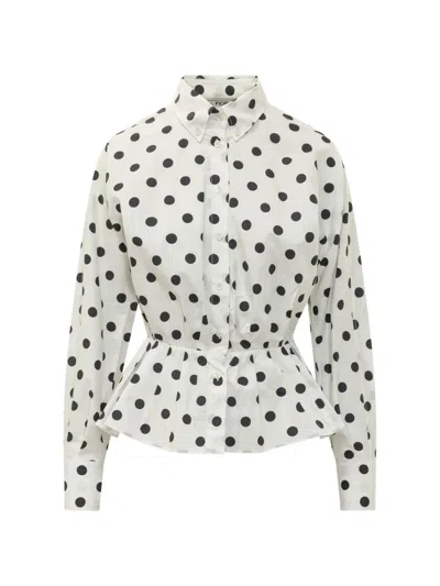 Polka-dot Peplum Shirt In White