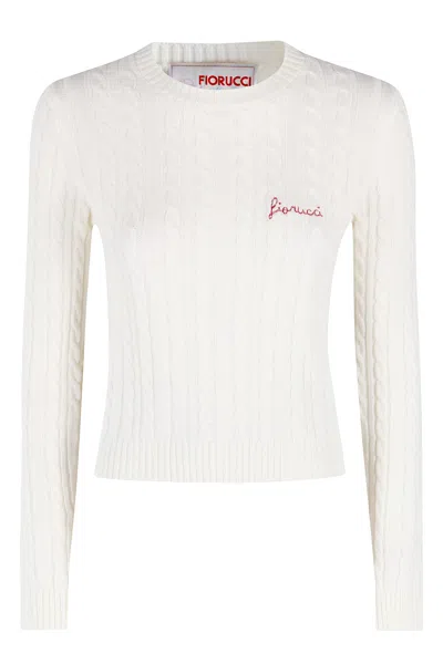 Merino Cableknit Red Logo Cropped Sweater In White