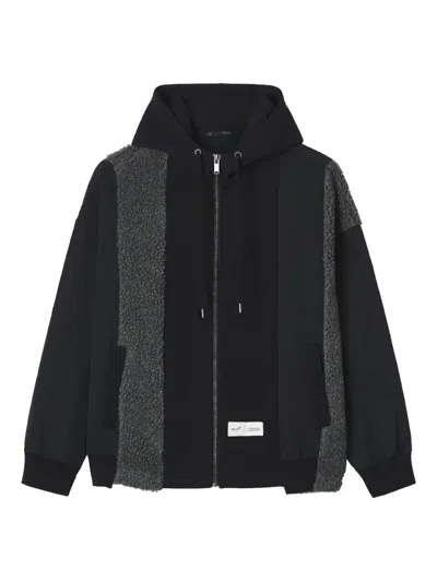 拼贴设计拉链连帽衫