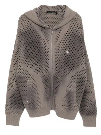 绞花针织拼贴设计连帽衫