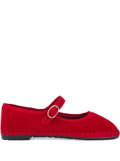玛丽珍丝绒扣环芭蕾平底鞋