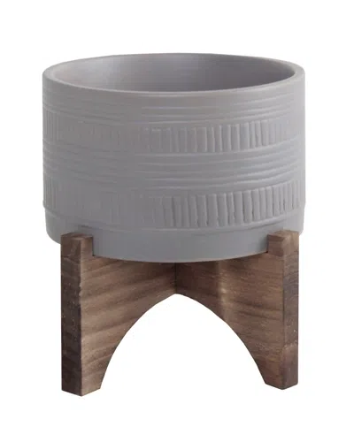 5in Arrow Ceramic Planter On Wood Stand In Clear