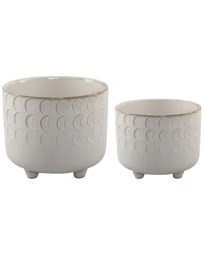 Set Of 2 Dandelion Footed Ceramic Planters In White