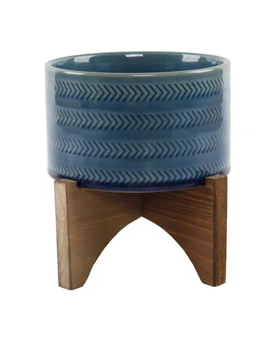 5in Arrow Ceramic Planter On Wood Stand In Clear