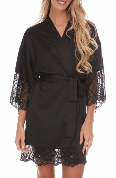 Gabby Lace Trim Satin Chermeuse Wrap In Black