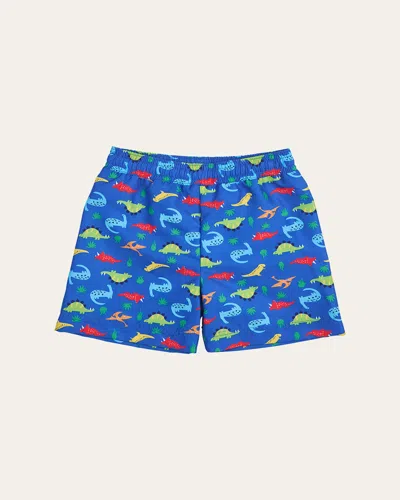 Kids' Boy's Dino-print Swim Shorts In Multi