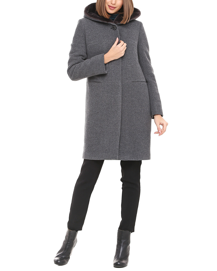 Long Wool & Angora-blend Coat In Gray