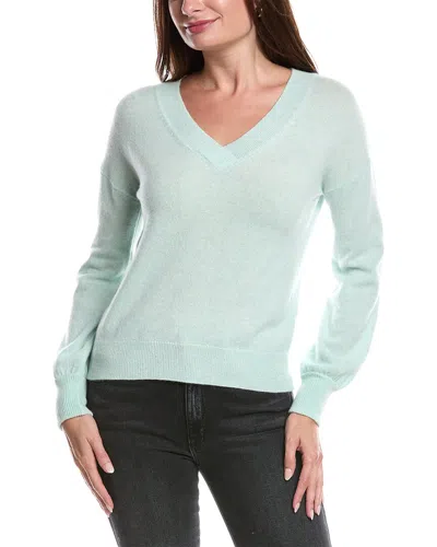 Gathered Sleeve V-neck Cashmere Sweater In Green