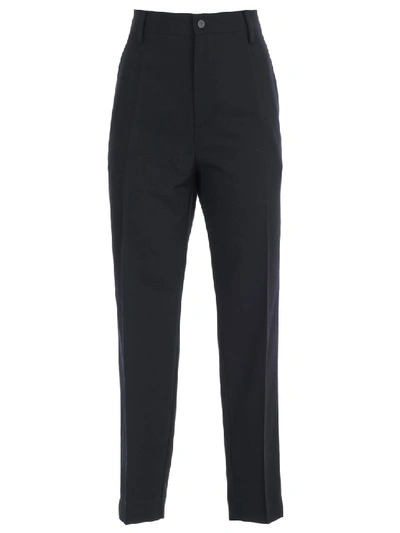 Relaxed-fit Blue Trousers With Straight Leg Design And Subtle Sheen