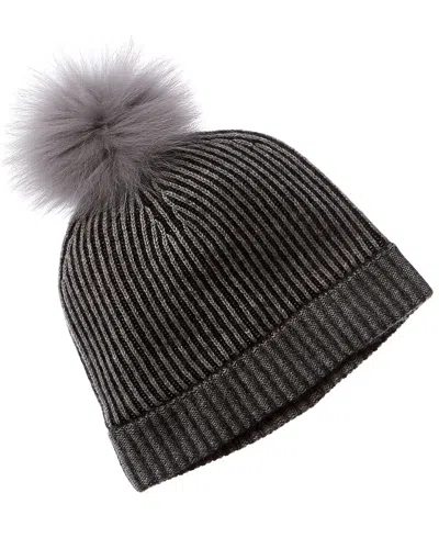 Cashmere Colorblocked Pompom Cashmere Hat In Gray
