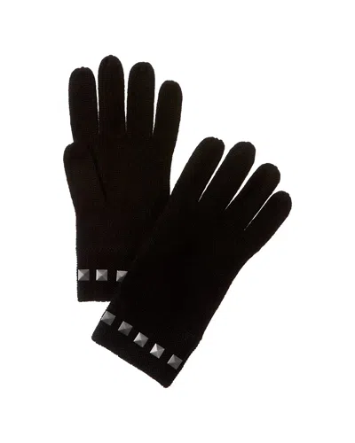Cashmere Square Metallic Studded Trim Cashmere Gloves In Black