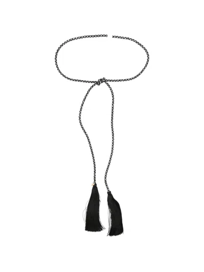 Crystals And Tassels Belt In Black
