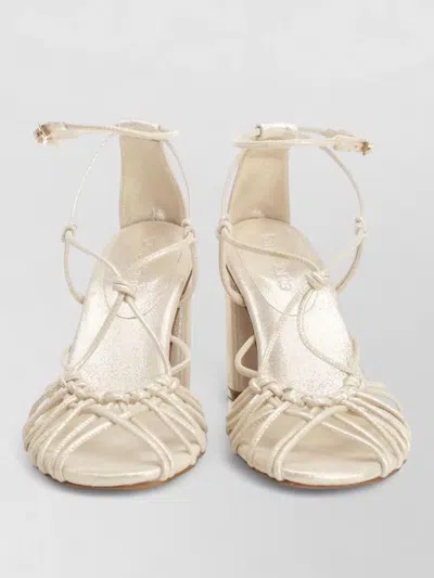 Forte_forte Heeled Laminated Leather Crossed Sandals Shoes In Beige