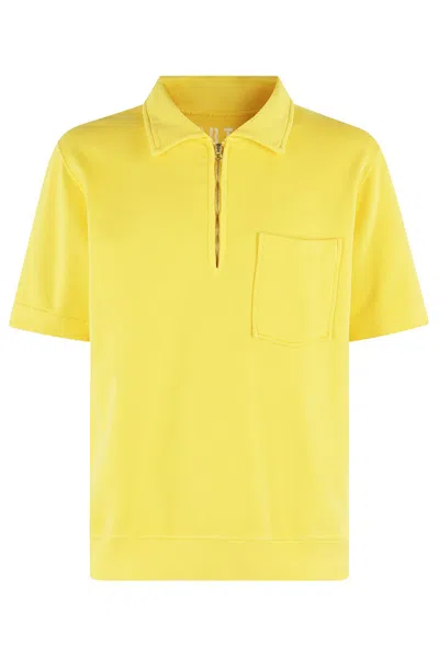 Yellow Zip-up Sweatshirt With Polo Collar In Gold
