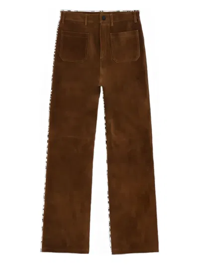 High Waist Suede Leather Trousers In Brown