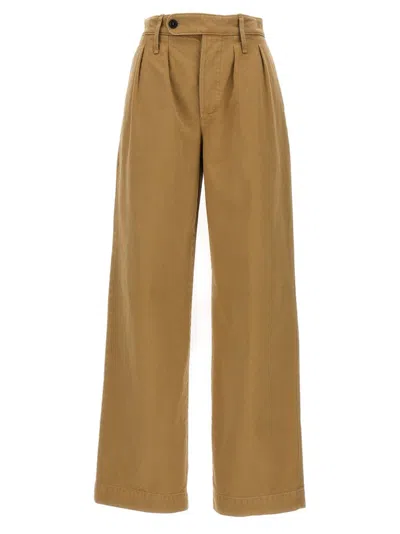 Double Pleat Cotton Trousers In Brown