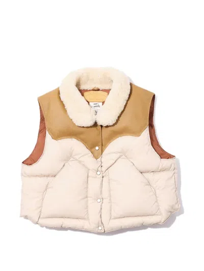 Sheep Leather Floral Embroidery Gilet In Neutral