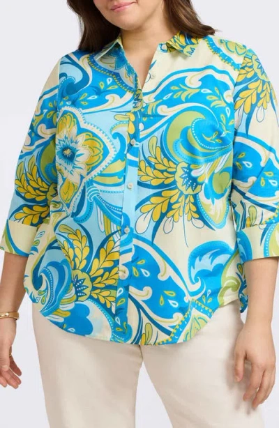 Margie Cotton Button-up Shirt In Blue/green/white