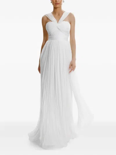 VIANNA V领褶饰超长连衣裙