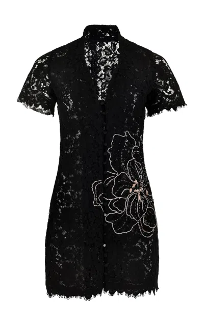 Moonlace Embroidered Cotton Mini Dress In Black