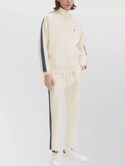 High Collar Track Jacket With Side Stripes In Neutrals